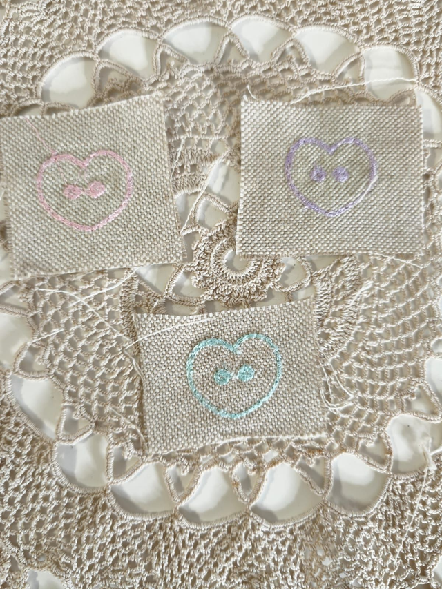 Etiqueta bordada com formato coração para poder coser e aplicar nos seus trabalhos criativos.