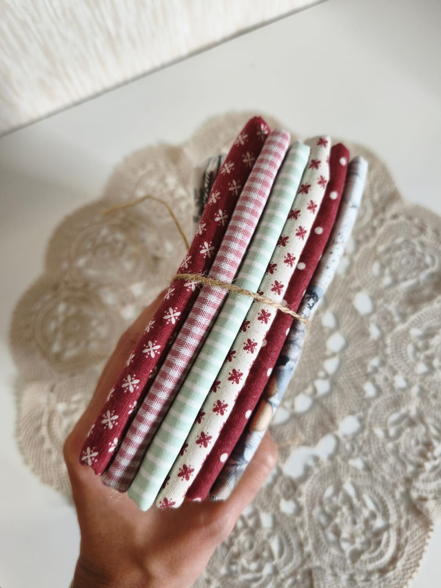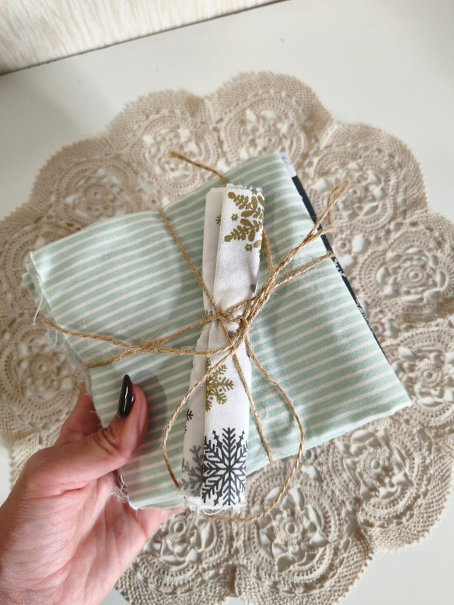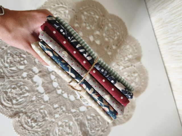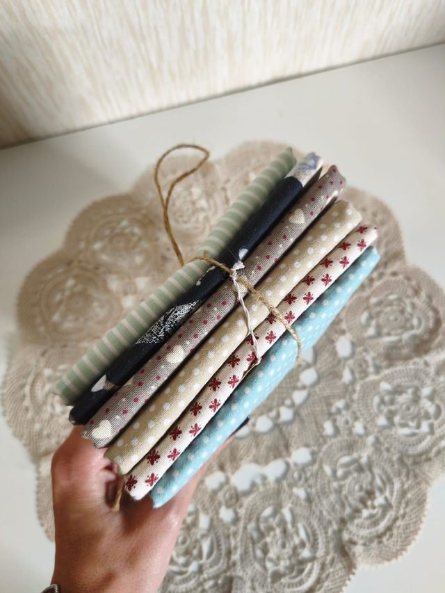 Fat quarter com 7 tecidos que combinam entre si.