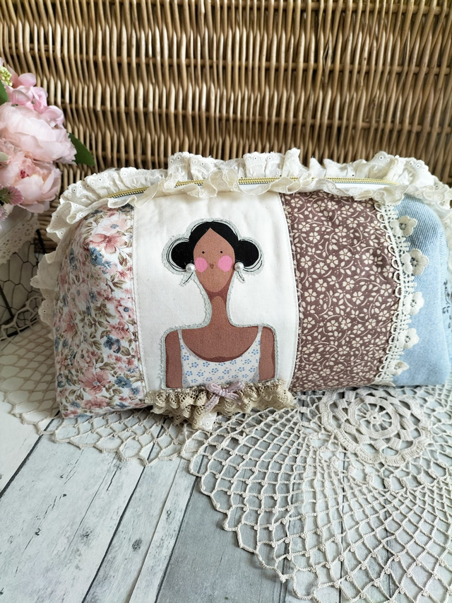 Peça artesanal criada com todo o cuidado e atenção aos detalhes. Este Necessaire Tilda é feito com tecidos de algodão e rendas decorativas e destaca-se pelo seu design único e acabamento profissional. Trata-se de um artigo por encomenda; por isso, os tons e padrões dos tecidos poderão variar conforme a disponibilidade. Ideal para guardar maquilhagem e produtos de higiene e perfeito para quem valoriza produtos feitos à mão com qualidade e charme.